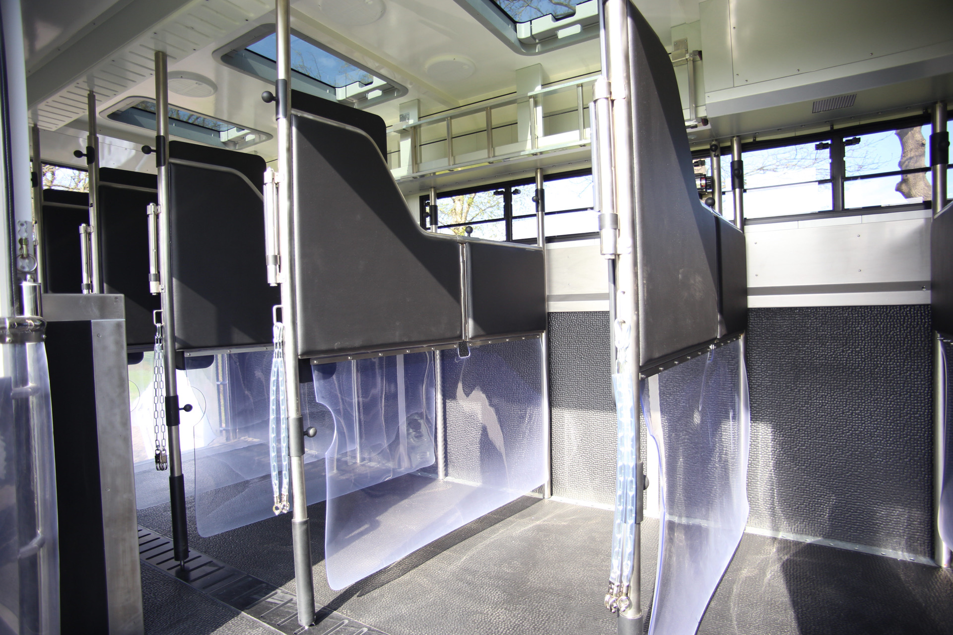 Een vrachtwagen heeft vaste formaten en het komt eerder voor dat er te weinig ruimte is dan te veel. Gelukkig zijn er ook opties voor een flexibele indeling. Denk bijvoorbeeld aan een pop-out naar de zijkant wat zorgt voor meer ruimte in de living, maar ook een deel wat naar boven uitschuift kan een uitkomst zijn wat het creëren van extra slaapruimte aangaat. Standaardmaten voor de living zijn er niet, dit is afhankelijk van met hoeveel mensen je hier gebruik van wilt maken. Wel is het zo dat volgens de Nederlandse wetgeving het paardengedeelte groter moet zijn dan de living. Alleen dan wordt de paardenvrachtwagen bij de RDW gekeurd als veevervoer. Ook knikschotten in het paardengedeelte kunnen voor ondernemers een verademing zijn. Dit zijn tussenschotten die je in het midden kan knikken, zodat je meer ruimte creëert tijdens het draaien als je paarden op de wagen zet of hierop wilt opzadelen. Hierdoor hoef je niet alle paarden eruit te halen – wanneer je een zij- en achterlader hebt – als je een paard uit het voorste deel van de wagen wilt pakken. Bij de nieuwe paardenvrachtwagens zijn minimaal twee knikschotten aanwezig, maar meer is ook mogelijk.