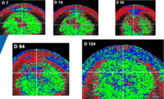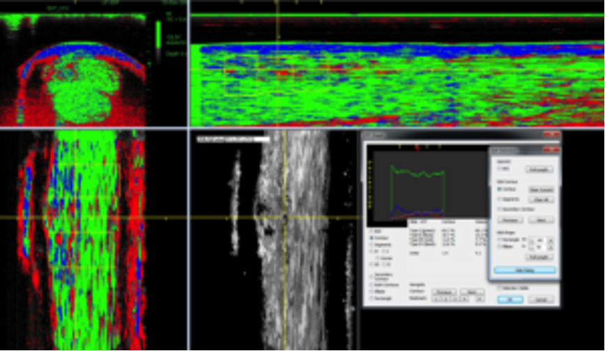 Waarom Franklin Lashley zo graag met het UTC-apparaat werkt, legt hij uit: “Tijdens het traject wat de probe langs het been aflegt, wordt om de 0,2mm een beeld gemaakt dat direct wordt verwerkt door de software in de computer. Hiermee kan er met één scan zowel een dwars- als lengtedoorsnede worden gemaakt. Vervolgens kan je op de computer zelfs een beeld van de pees in elke gewenste richting bekijken. Dit geeft een 3D-beeld van de peesinrichtingen die je anders alleen bij het doorsnijden tijdens een operatie zou kunnen zien. Een groot voordeel van de UTC is dat deze ook een berekening kan maken van de kwalitatieve toestand van de pees. Hiermee kunnen de belastbaarheid en kwaliteit van het aanwezige weefsel worden bepaald. Dit geeft aan in hoeverre de pees weer gebruikt kan worden na bijvoorbeeld een blessure, zware belasting of rust. Ook kunnen we op deze manier al kleinere (subtiele) veranderingen opsporen nog voordat deze overgaan in een echte verscheuring.”